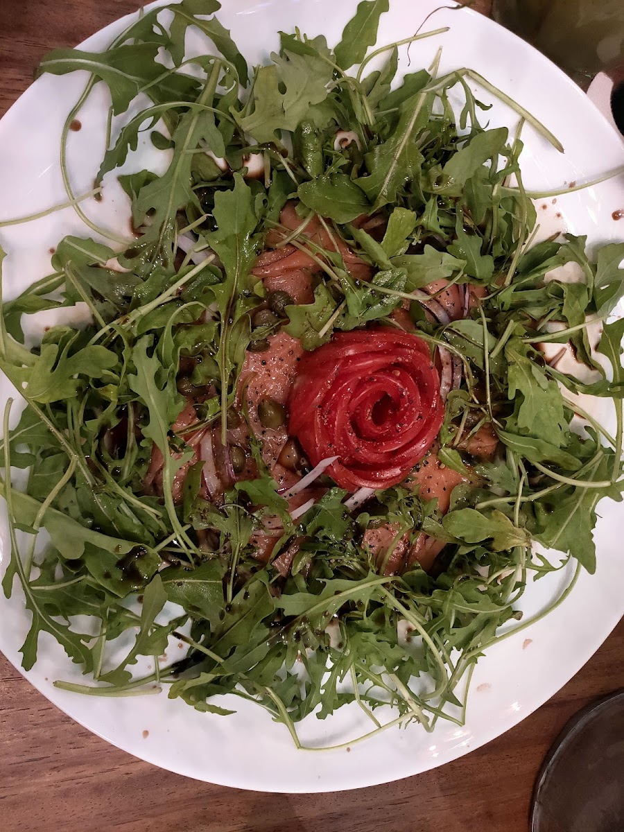 Carpaccio de Salmón: A delicate and fresh salmon dish, ideal for seafood lovers.